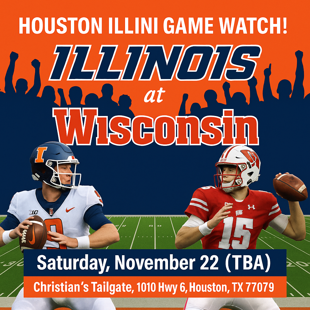 Join us at Christian’s Tailgate on Saturday, November 22 (TBA) for Illinois at Wisconsin!