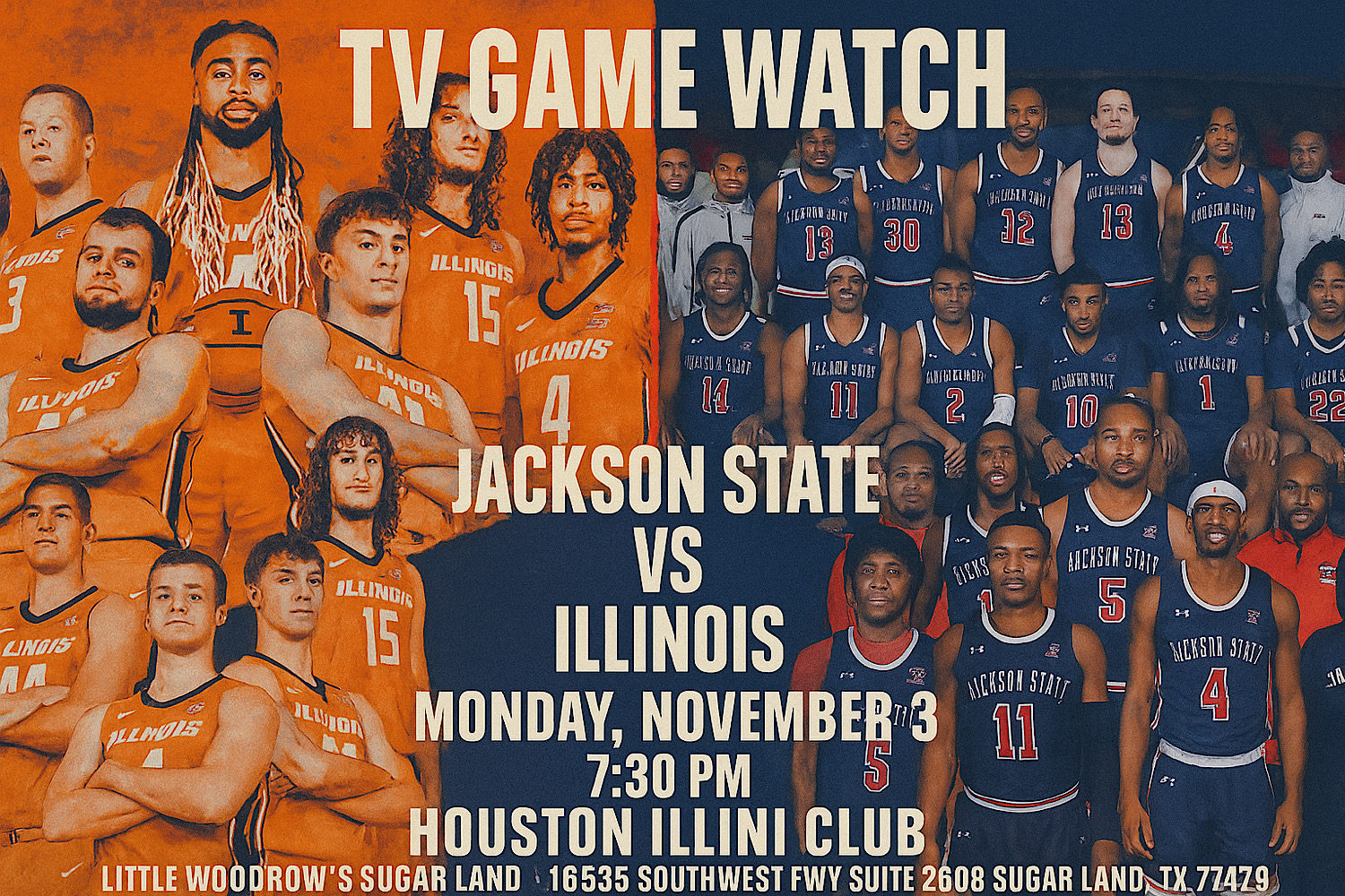 Join us for Jackson St. vs. Illinois at Little Woodrow’s Sugar Land on Monday, Nov 3 at 7:30 pm!