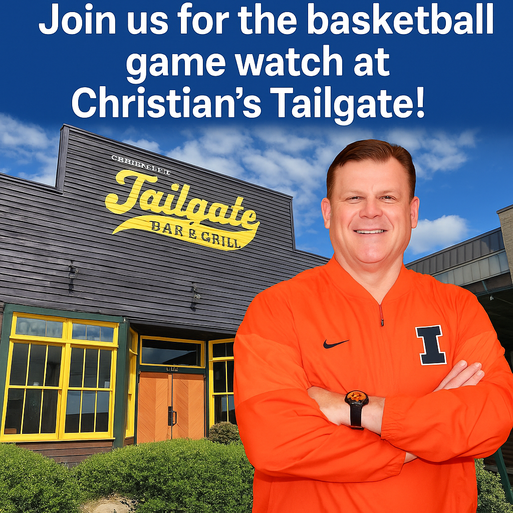 Join us at Christian’s Tailgate on Tuesday. Nov 11 7:30 PM for Illinois vs. Texas Tech 🏀!